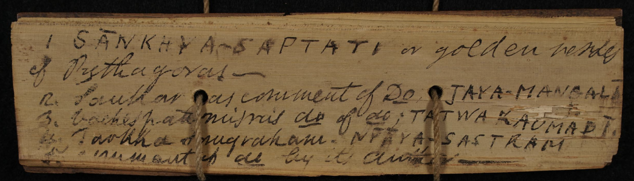 The manuscript label's equation of Sāṃkhya with the Golden Verses of Pythagoras reveals less about the Indian text itself and more about how 19th-century British intellectuals tried to make sense of the East.